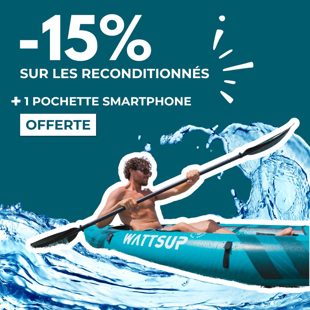 La composition des packs : l’ensemble de nos équipements sont vendus en packs complets avec un équipement standard. Vous pouvez facilement « upgrader » chacun de nos packs – pagaie carbone, pompe électrique, sac premium, dry bag… - tout en bénéficiant de remises chocs sur chacun des accessoires.