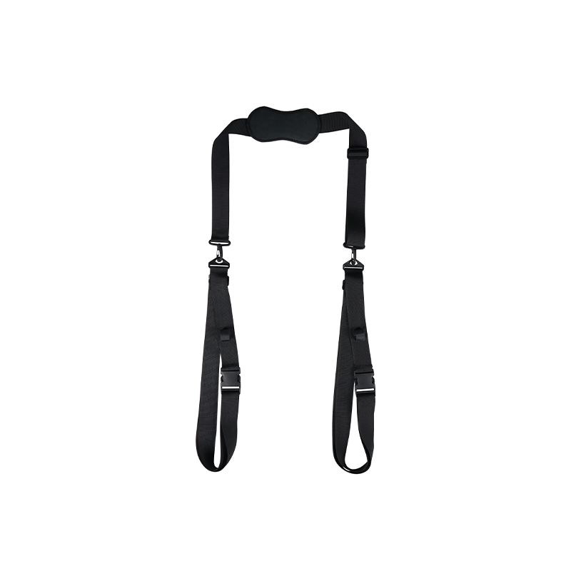 Pour porter le matériel sans difficulté et dans un confort optimal, la sangle dispose d'un coussinet en mousse qui se place au niveau de l'épaule.