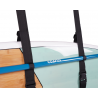 La sangle possède un système de rangement supplémentaire permettant de fixer une pagaie en plus de sa planche afin de libérer intégralement les mains de son utilisateur. Le modèle s'adapte à toutes les tailles de planches.