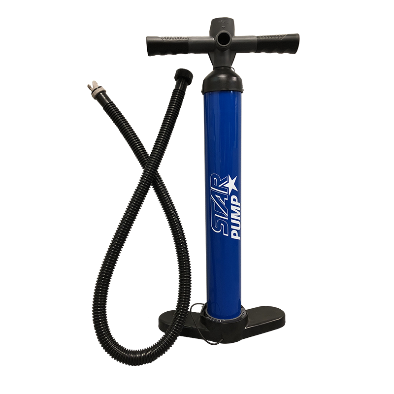 Starpump propose une pompe manuelle double action : ce système permet de gonfler le paddle à la montée et à la descente, en tirant et en poussant sur la poignée. Cela réduit le temps de gonflage de 30% !
