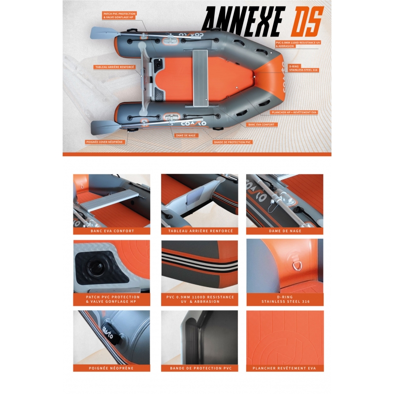 Les nouvelles annexes COASTO sont proposées à des prix très attractifs et offrent une grande qualité de construction. Le design novateur vous permettra de vous démarque sur l'eau !