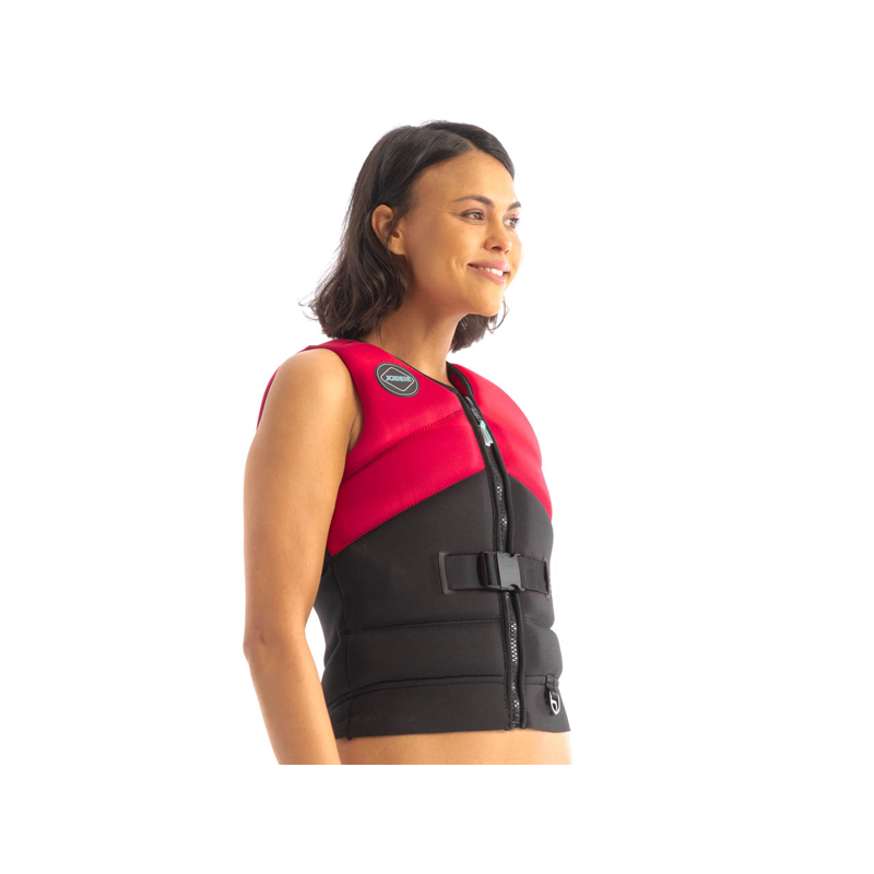Jobe propose un gilet destiné à durer, grâce à la combinaison de mousse PVC souple et de néoprène flexible.