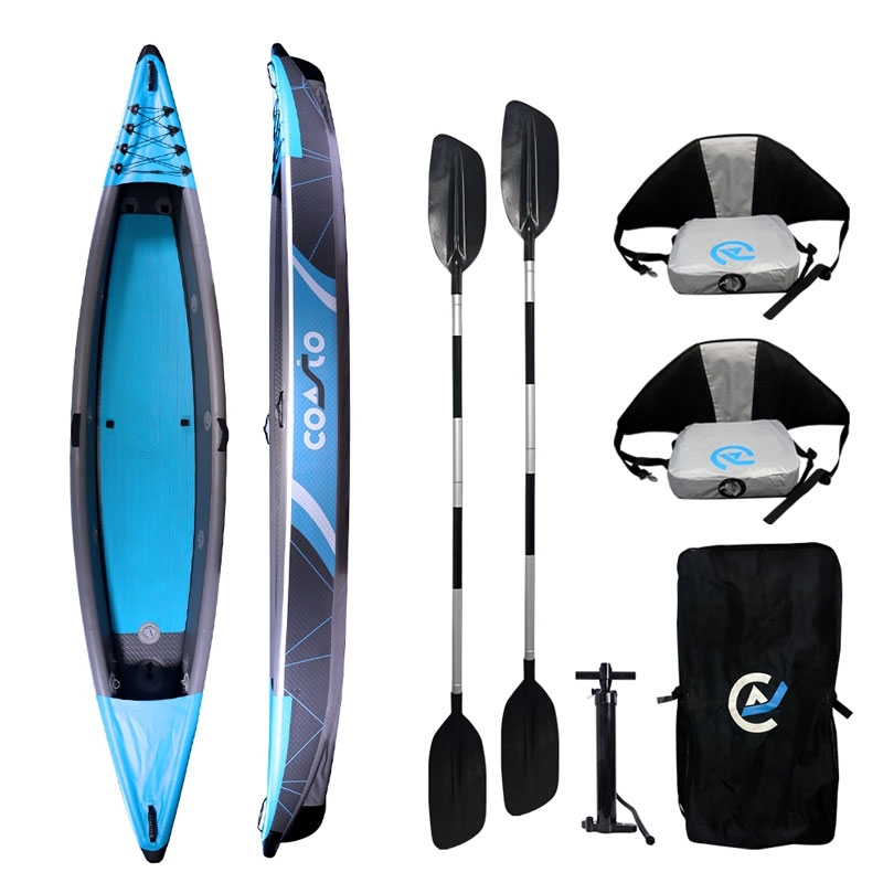 Le Kayak gonflable Coasto Russel est configuré pour parcourir de grandes distances dans un grand confort grâce à sa qualité de conception et son cockpit spacieux. Deux sièges avec des dossiers hauts et réglables permettent de pratiquer du kayak pour un weekend et bien plus.