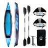 Le modèle 2 places a une charge maximale de 200kg, il est livré avec deux pagaies en 4 parties avec double pale, deux sièges confort en Dropstitch et néoprène, une pompe haute pression et un sac de transport.