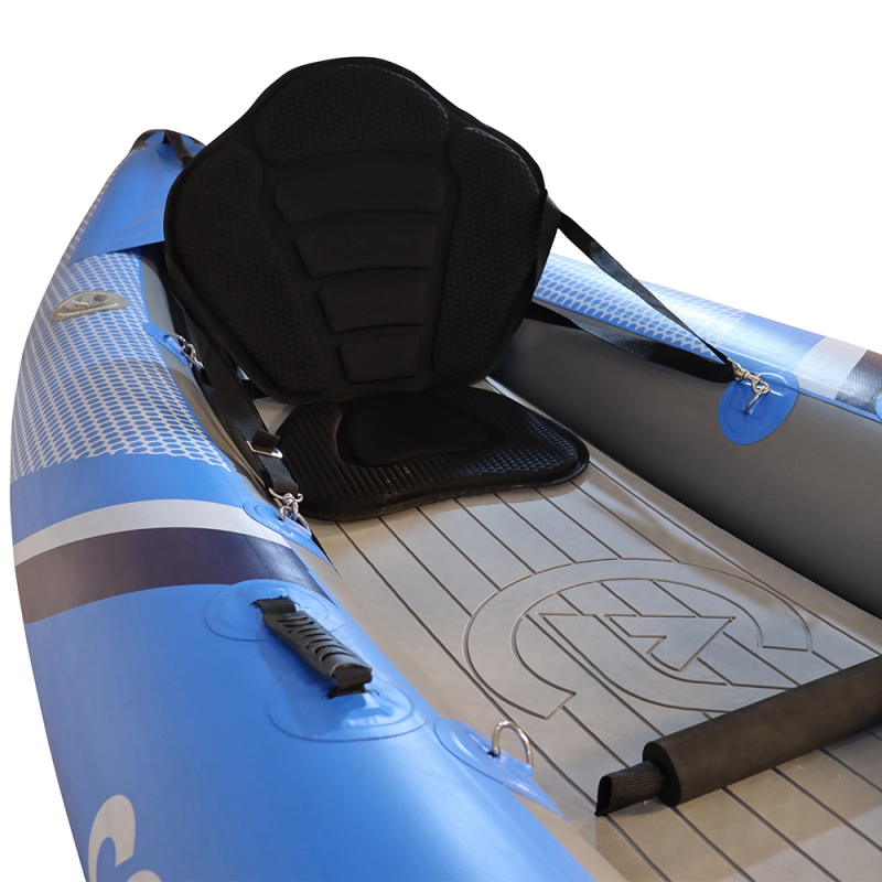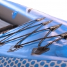 Le modèle 2 places a une charge maximale de 170kg, il est livré avec deux pagaies en aluminium en 4 parties avec double pale, deux sièges confort en Dropstitch et néoprène, une pompe simple action et un sac de transport.