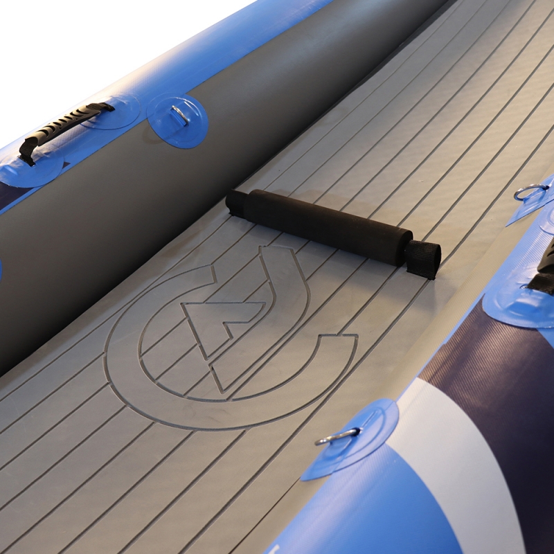 Pour un confort optimale et un design modern, le plancher gonflable a un revêtement logoté en Mousse EVA