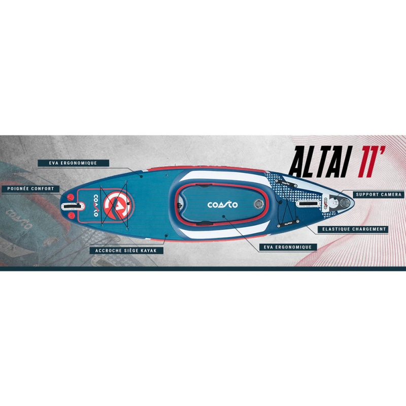 Le SUP/Kayak gonflable Coasto Altaï est configuré pour parcourir de grandes distances dans un grand confort. Siège en Dropstitch et néoprène, pagaie en 4 sections, conception en Dropstitch, 2 chambres à air, dimensions XL, 2 élastiques de chargement : voici les atouts de ce modèle 2022 !