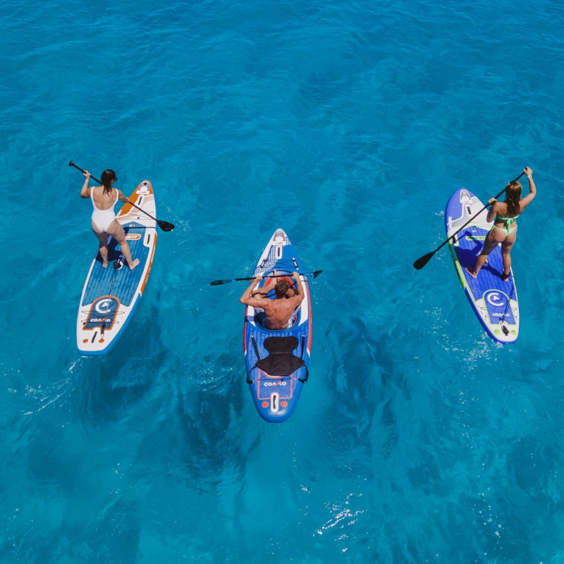 Ses dimensions extra large (11'2"x35"x8") assurent le parfait mix entre vitesse, confort et stabilité dans les deux pratiques. Coasto ne lésine pas sur les détails : un siège très confortable et ajustable, une pagaie en 4 sections, deux ailerons, deux filets de chargement, 3 poignées de transport et 8 D-Rings en Inox.