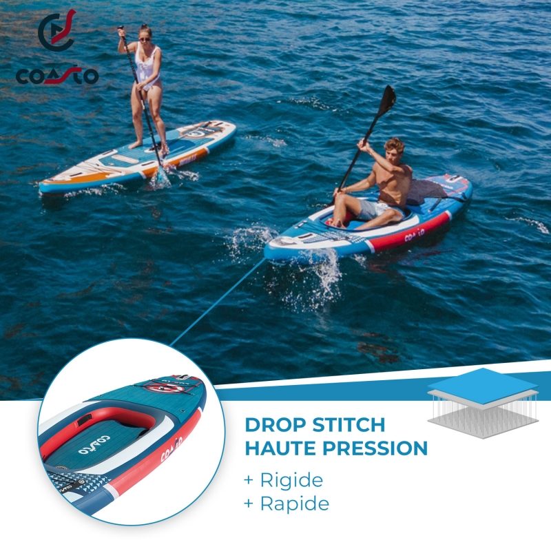 Coasto a conçu ce SUP/Kayak avec la technologie Dropstitch. Ce procédé de construction est l'une des techniques plus avancées pour augmenter la rigidité tout en diminuant le poids de la structure.