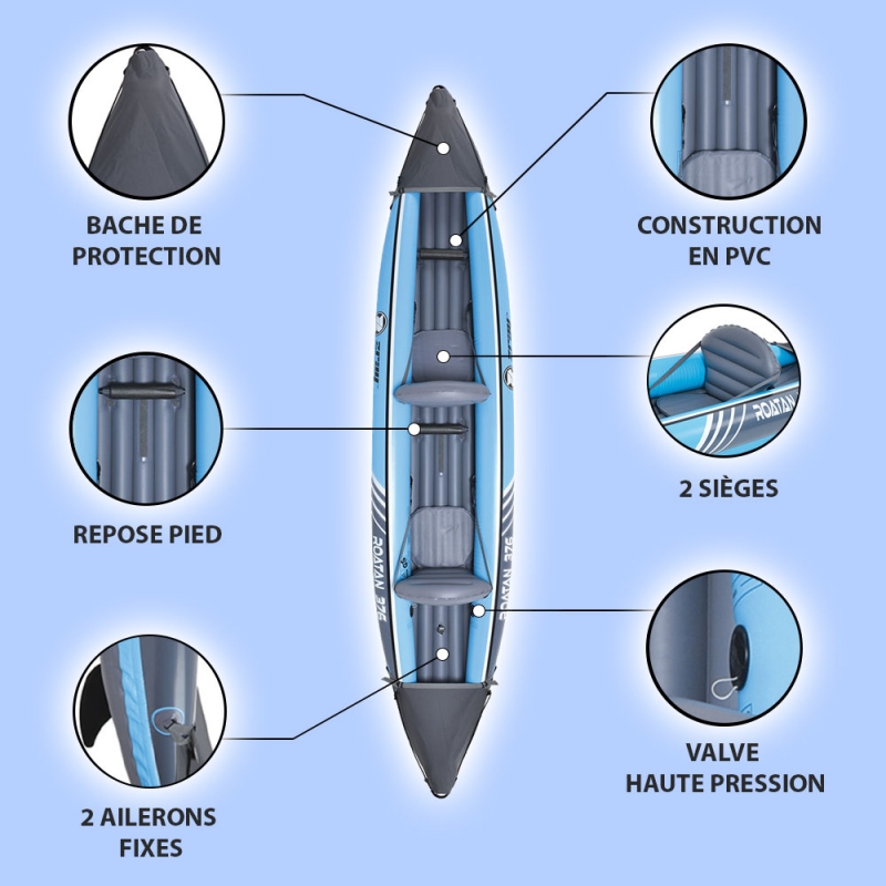 Les spécifications de ce kayak gonflable ont été étudiées pour la famille : flexible et léger, accessoirisé, facile à transporter…