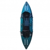 Le modèle 1 place à une charge maximale de 180 KG, permettant de naviguer seul avec du matériel ou avec un enfant. Le kayak bénéficie de deux poignées et est livré avec un sac de transport à roulette, facilitant son transport. Une pagaie en 3 parties avec double pale, un siège en néoprènes, une pompe haute pression et un kit de réparation sont fourni avec le COD.