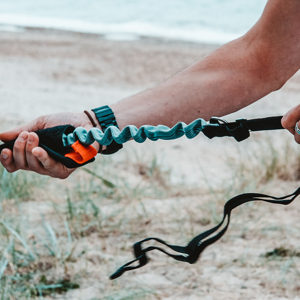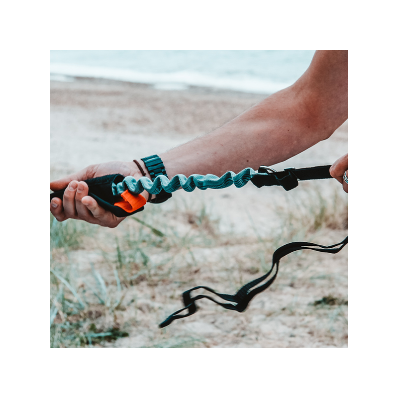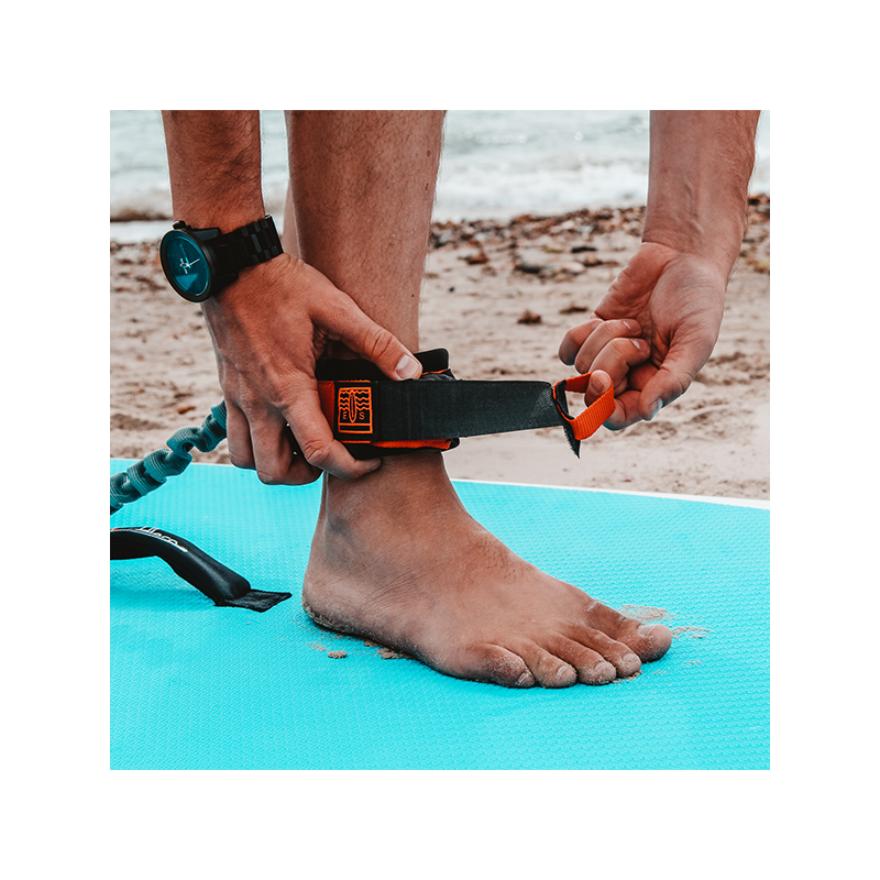 Le leash possède un système de câble et de tissu élastiques pour éviter que le câble s'accroche à un obstable lors de son utilisation et son système de fixation au niveau de la jambe est extrêmement agréable durant la pratique de paddle !