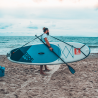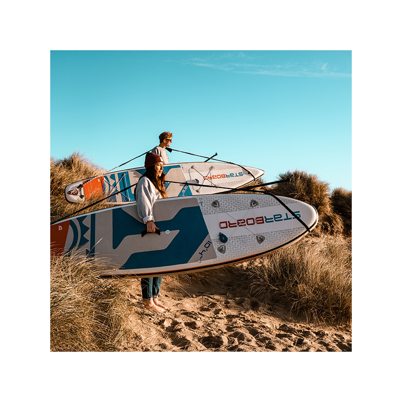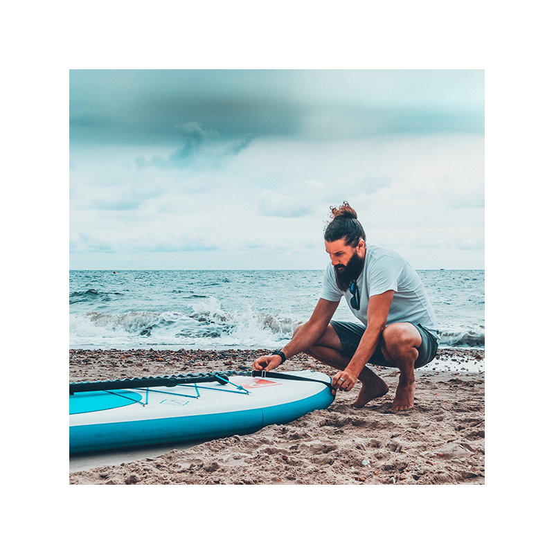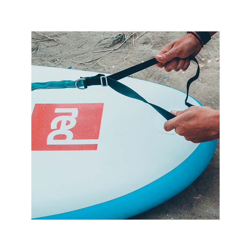 Pour faciliter les déplacements du paddle et garder les mains libres durant son transport, le leash se transforme en sangle de portage.