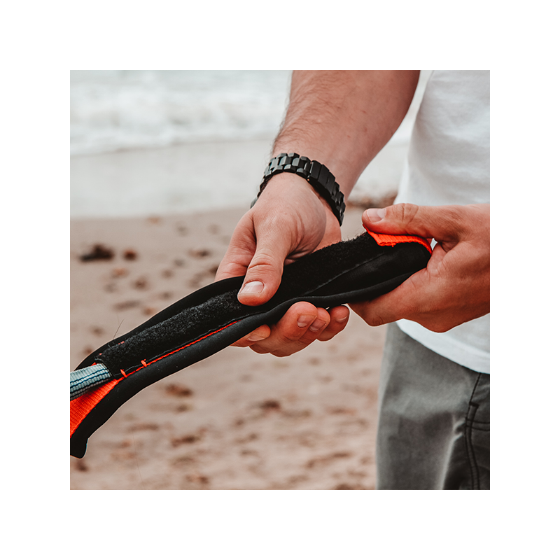 Le leash dispose d'une construction robuste en Néoprène qui lui confère au système de fixation un grand confort d'utilisation.