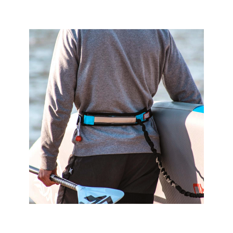 Le leash est un modèle qui se transforme en quelques actions en un système de portage agréable pour paddle qui libère les mains de son utilisateur.