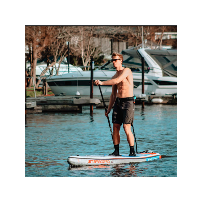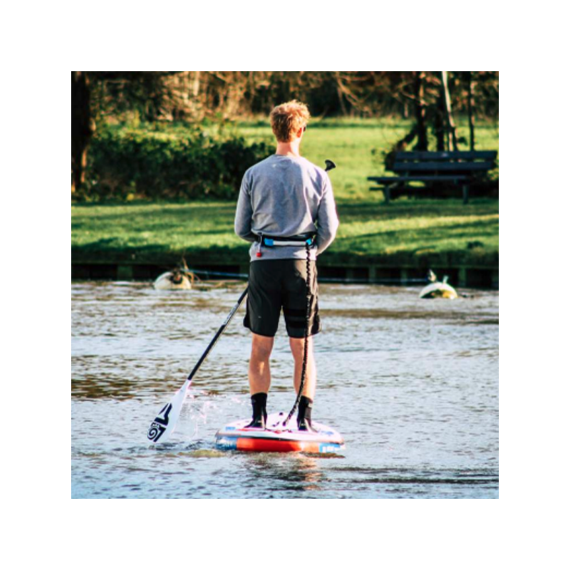 Lorsqu'il est nécessaire, le leash peut se transformer en une sangle d'épaule confortable pour transporter le paddle sans difficulté en libérant ses mains.