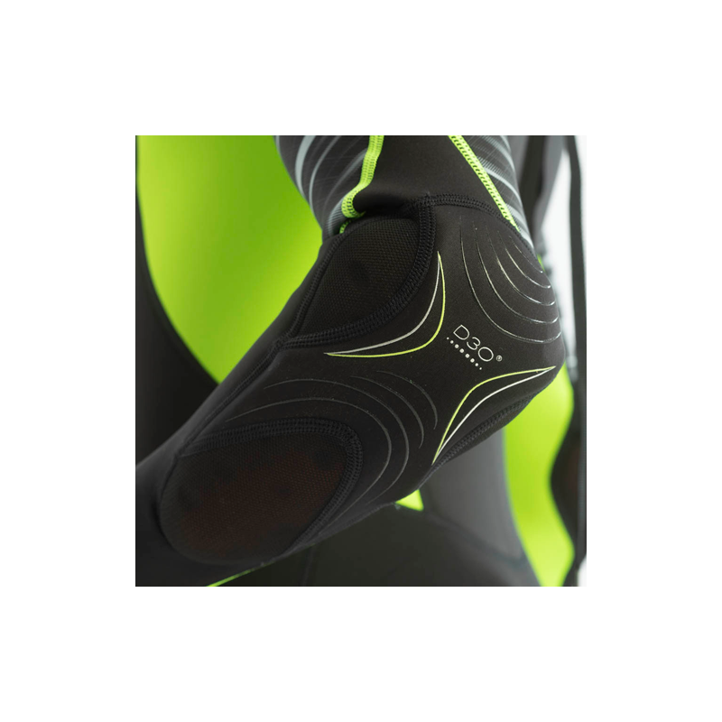 Des protections contre les chocs D3O se trouvent sur les tibias, les genoux, les coudes et les épaules. Pour davantage de sécurité, la combinaison est également dotée d'une bande de renforcement à l'intérieur et d'un panneau de tibia extra long.