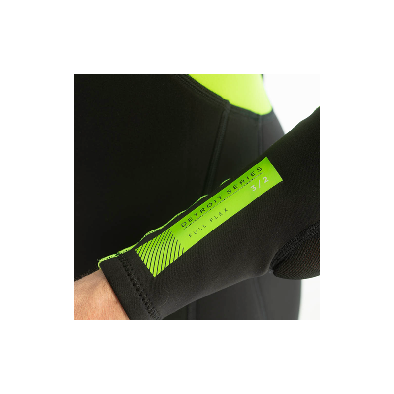 Le Néoprène 3/2mm extensible apporte chaleur et la fermeture dorsale permet une entrée rapide.