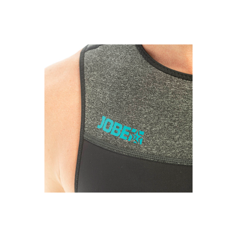 Jobe propose des nouvelles fonctionnalités pour cette combinaison : un velcro d’épaule amélioré et des coutures flatlock durables.