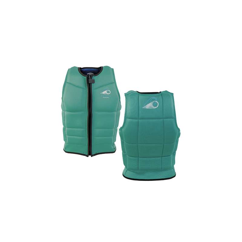 Wake Vest Reac est une veste créée en respectant des normes importantes pour être éco-responsable. La mousse utilisée ne comporte pas de PVC, les tissus intérieurs sont en polyester recyclé et l'ensemble du Néoprène Limestone est renforcé avec une colle à eau pour ne pas utiliser de produit toxique.