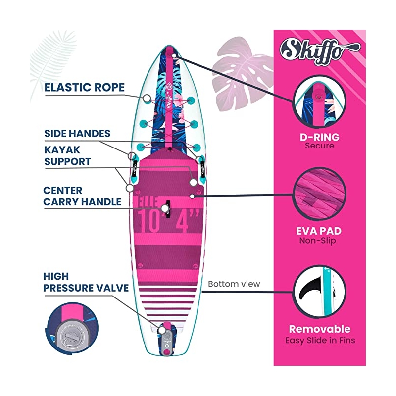 Le SUP SKIFFO ELLE est doté d’un pad de pont en mousse EVA pour un confort et une adhérence optimale lors de vos sessions.