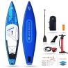 Le paddle gonflable Aquamarina Hyper 11'6 est une plateforme stable et volumineuse de par ses dimensions imposantes (350x79x15cm). La grande surface de contact entre la planche et l'eau offre également un très bon répondant à chaque coup de pagaie. Il n'en est pas moins performant grâce à son shape type Race qui perce l'eau pour une prise de vitesse rapide.