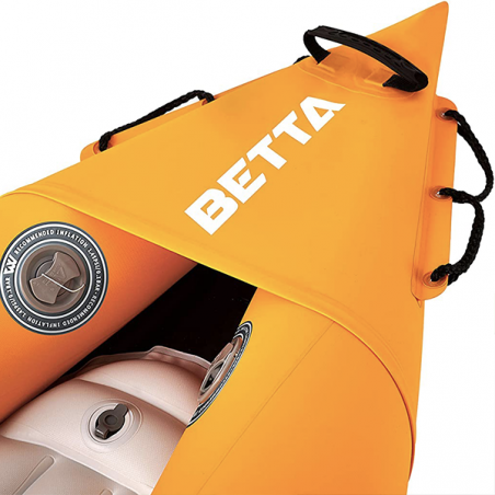Le Betta est un kayak disposant de nombreux renforts en PVC et d'un par vague avant pour une glisse en toute sécurité !
