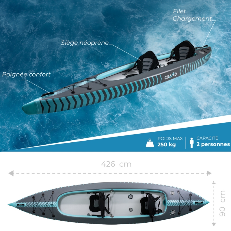 Caractéristiques Kayak gonflable reconditionné Coasto Capitole 2P haute pression