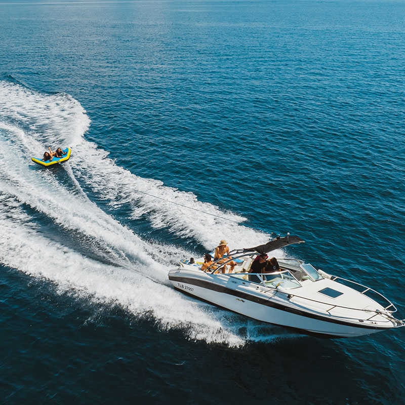 Une fois terminé le gonflage, pensez à bien fermer les bouchons et profitez au maximum de votre bouée tractée !