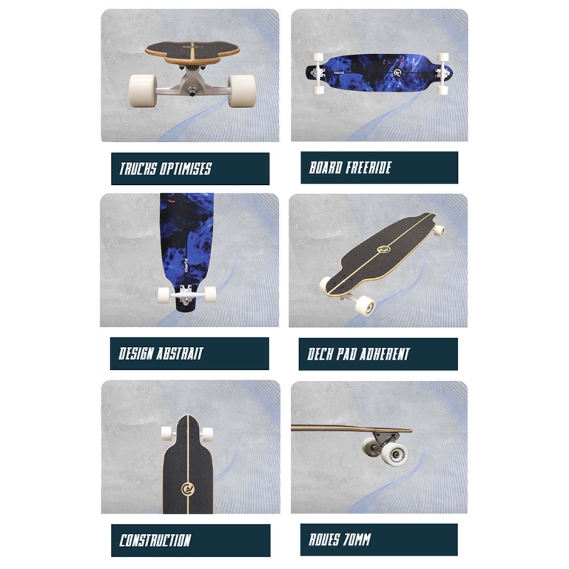 La maîtrise totale de la board est possible grâce à ses trucks conçus et optimisés spécialement pour une prise de vite progressive et un maniement optimale dans les grandes courbes.