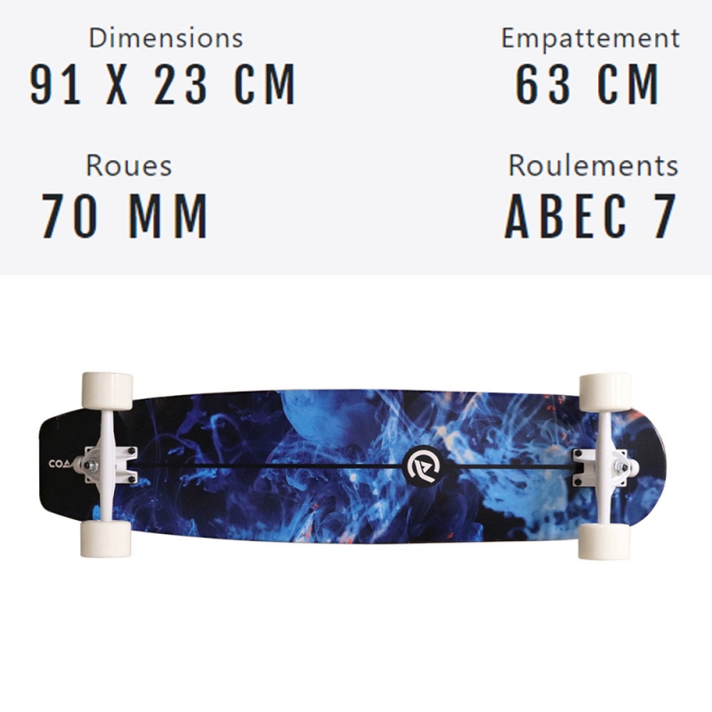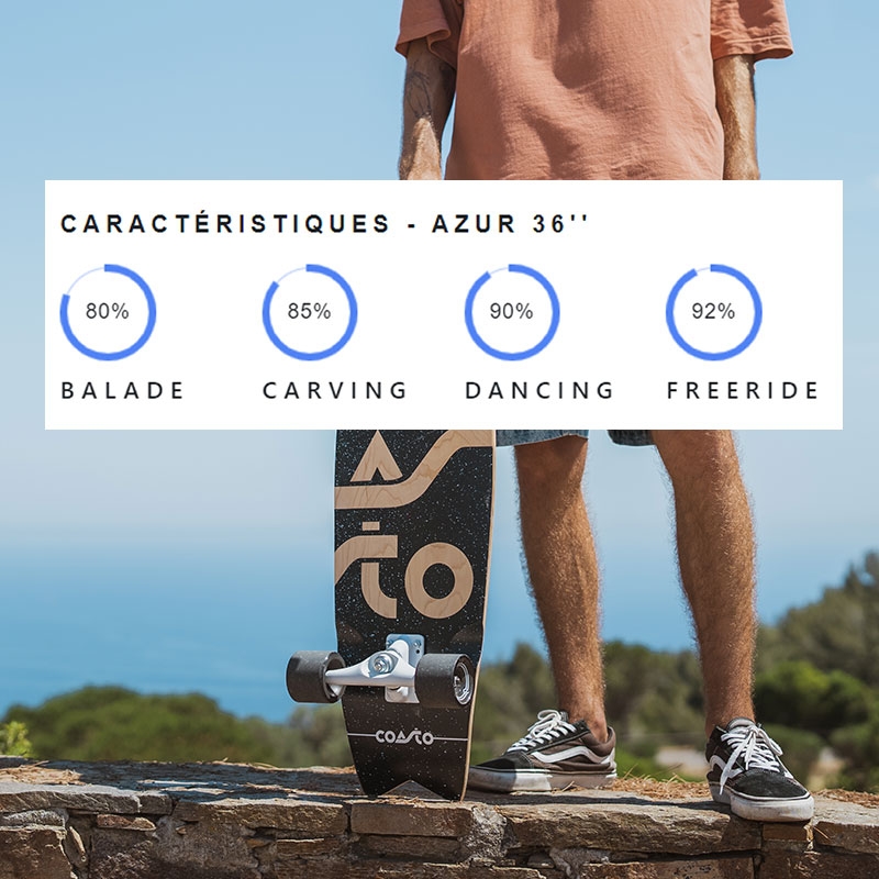 A mi-chemin entre la longboard et le surfskate classique, le modèle AZUR 36" de COASTO est la planche idéale pour cruiser et se promener, mais également pour faire des déplacements rapides avec un maximum de stabilité.