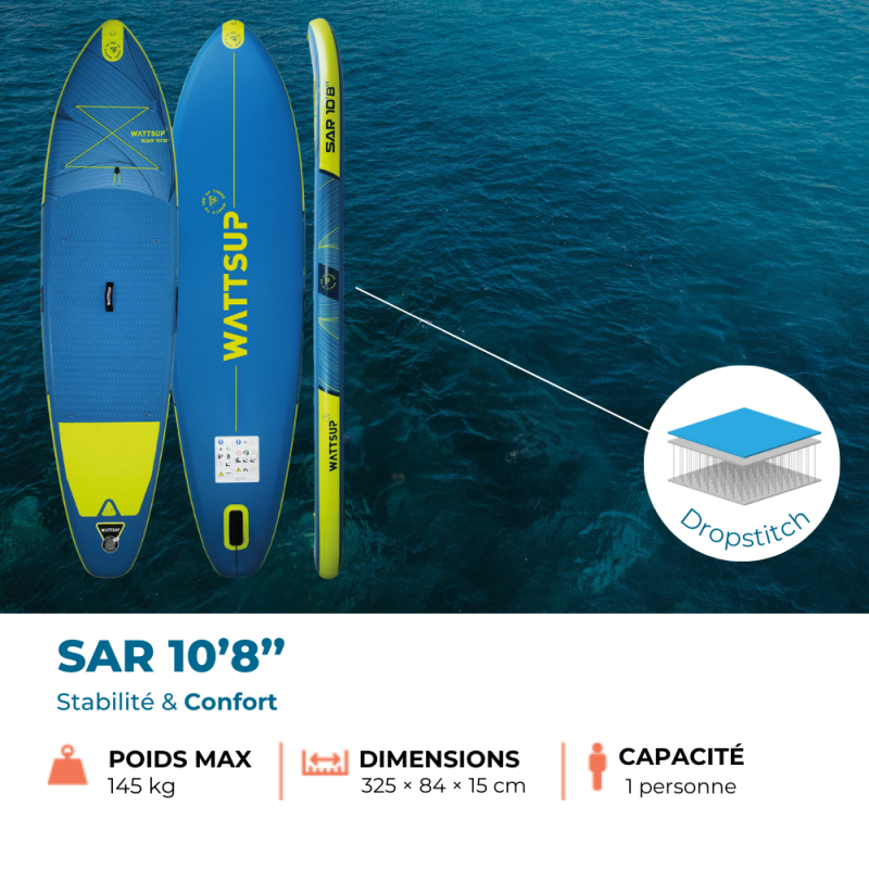 Caractéristiques PACK SUP GONFLABLE WATTSUP SAR 10'8" reconditionné