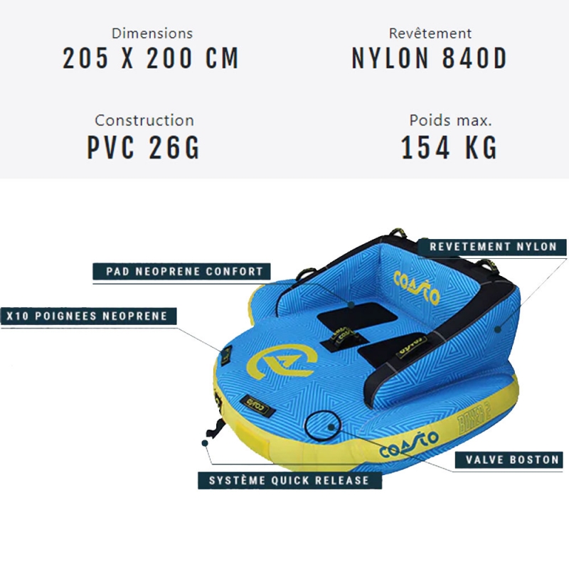 Coasto propose un modèle capable d'accueillir 2 personnes et a placé pour chaque passager un pad en Néoprène pour un confort et maintien optimal.
