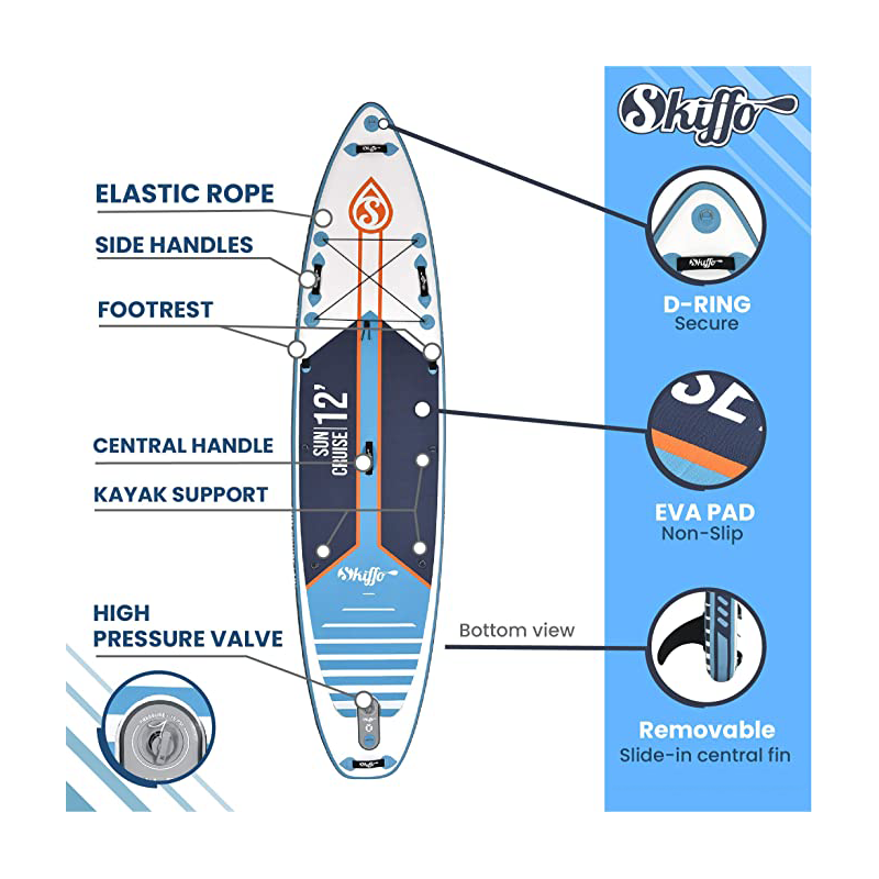 Les SUP SKIFFO SUNCRUISE sont dotés d’un pad de pont en mousse EVA pour un confort et une adhérence optimale lors de vos sessions.