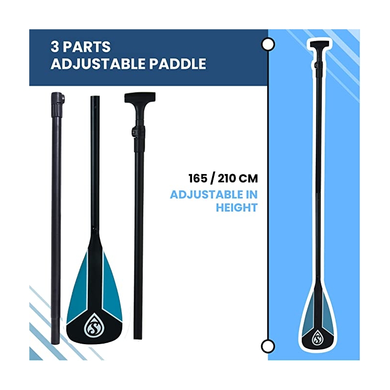 SKIFFO équipe ses planches avec un équipement de qualité. Avec ce pack, vous recevrez un sac de transport à roulettes (celles-ci sont placées à l’avant du sac afin d’éviter les douleurs dans le dos lors d’un usage « sac à dos ».), une pagaie en aluminium ajustable de 165 à 210cm, un leash torsadé et un kit de réparation.