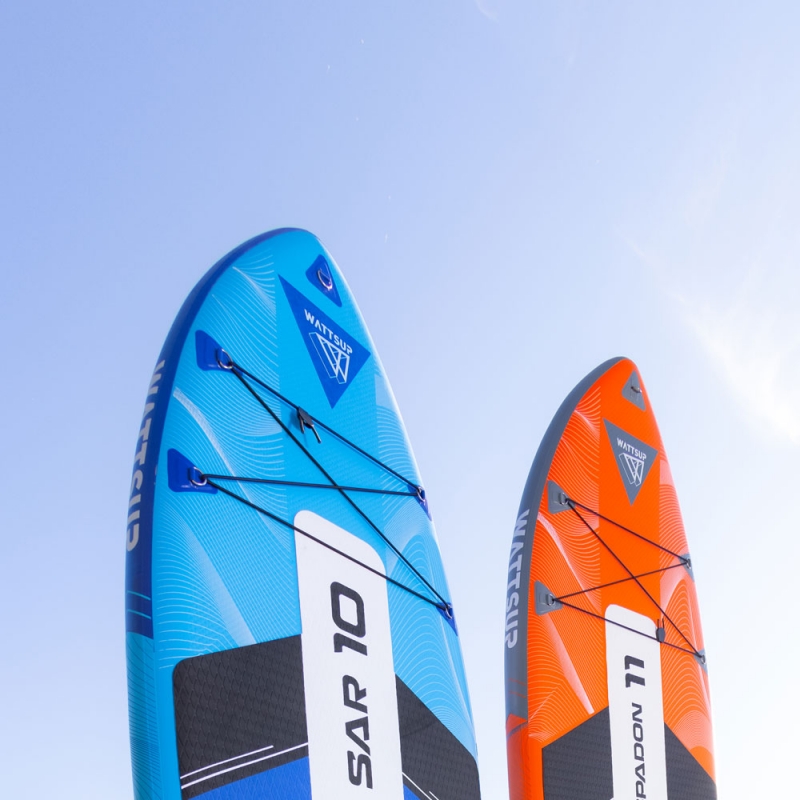 La marque Wattsup signe la fin des planches « entrée de gamme » en 10cm d'épaisseur en offrant aux riders des Stand up paddle accessibles et qualitatifs. A la fois plus stables, plus rigides et plus durables, les SUP Wattsup sont également dotés de 4 D-rings pour y placer un siège kayak et d'un kick pad pour gagner en manœuvrabilité.