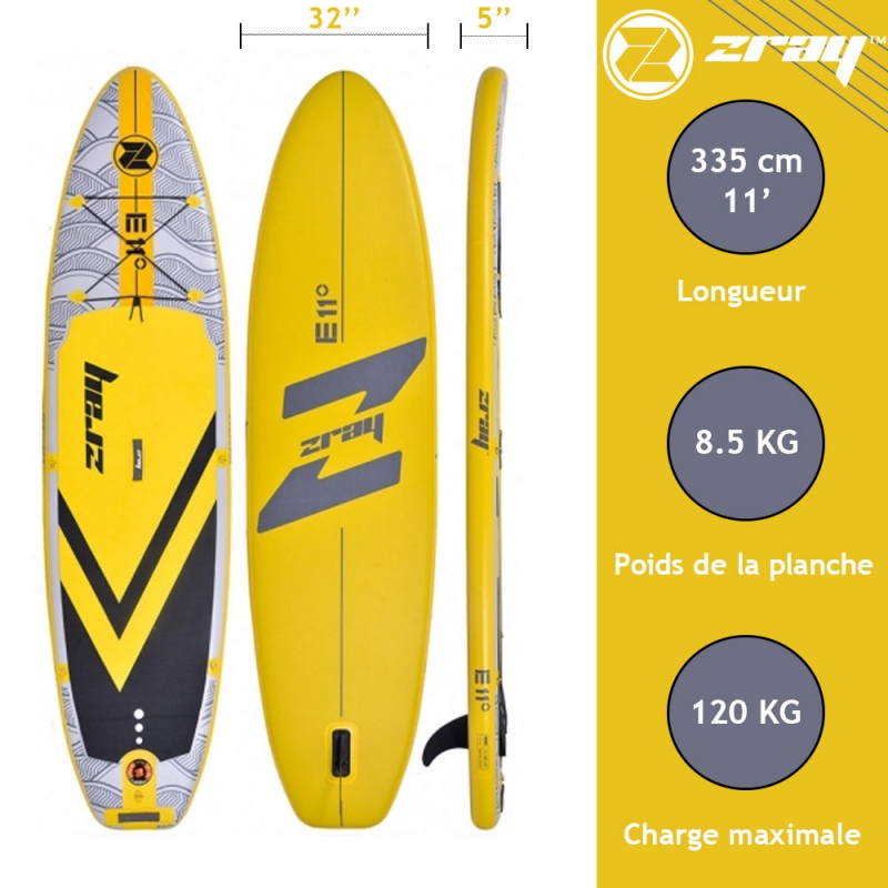Ultra-rigide et stable grâce à ses 13cm d'épaisseur, le SUP E11 offrira également une excellente glisse avec ses 330cm de long. Son volume (246L) lui octroiera une bonne emprise sur l'eau pour un gain de vitesse rapide. Cette planche sera à la fois adaptée à l'initiation pour les débutants à la recherche de stabilité et aux plus expérimentés à la recherche de prise de vitesse pour les longues balades.