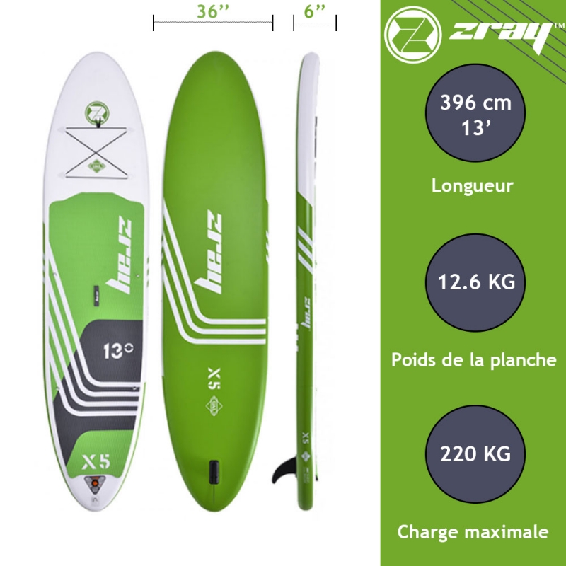Le X-RIDER XL 13' est long (396cm) et ultra-rigide octroyant une surface de contact avec l'eau pour une prise de vitesse rapide.