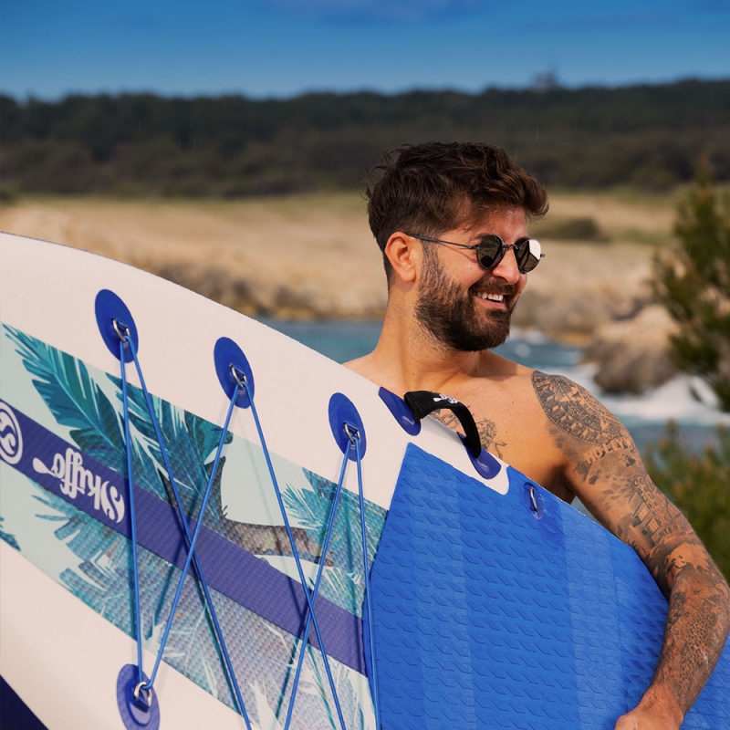 Les SUP SKIFFO sont équipés de 3 poignées (2x latérales et 1x centrale) en néoprène pour un confort amélioré lors du transport de votre SUP.