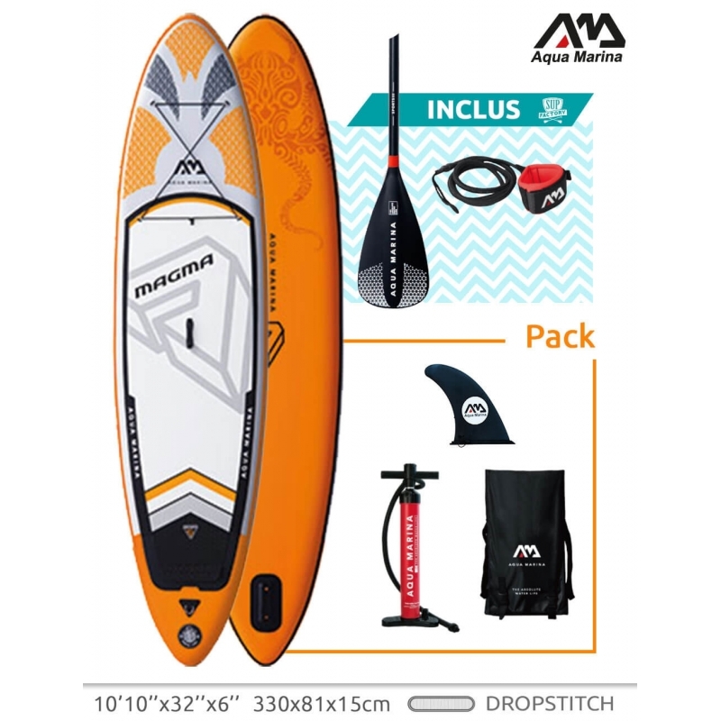 Les spécifications techniques - 330x81x15cm - de l'Aquamarina MAGMA offrent la plus large panoplie de possibilités et pratiques. Ces spécifications assurent une bonne glisse, une rigidité accrue de la planche et une bonne stabilité.
