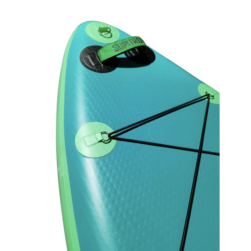 Quatre D-rings sont répartis au centre du pad afin d'y ajouter un siège kayak et prolonger l'expérience de glisse de son utilisateur (un anneau supplémentaire ajouté sur le tail et le nose pour tracter le paddle si nécessaire).