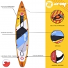 Avec ses 14'/426cm de long et ses 28"/71cm de large et ses 6"/15cm de large, ce modèle Race ultra-rapide sera d'une rigidité imbattable. Compatible pour les riders jusqu'à 170 kg, cette planche sera parfaitement adaptée aux plus grands gabarits ainsi qu'aux riders qui veulent monter en duo.