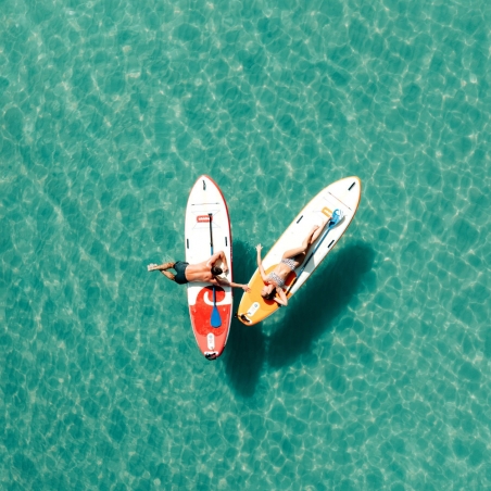 Pack complet prêt à l'eau Pompe, leash, aileron, drybag 10 L, pochette smartphone étanche… tout est inclus pour partir à l'aventure dès le premier jour.