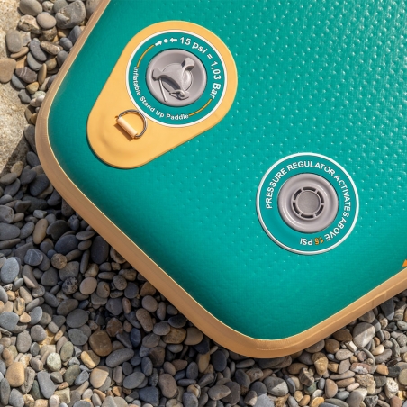 Pack complet prêt à naviguer Pagaie hybride 15% carbone, sac de transport rembourré, pompe double action, leash anti-twist et 2 ailerons Slide-in… tout est inclus pour partir dès le premier jour.