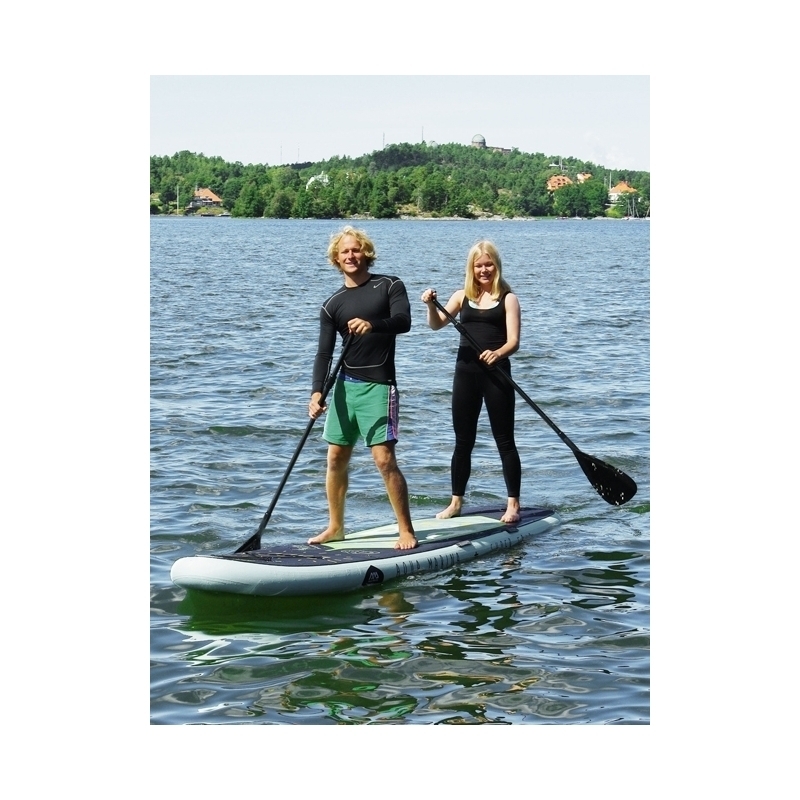 Muy estable y muy buena rigidez. Lo he usado en la playa con mi pareja y da muy buenas prestaciones, muy amplia y grande, por lo que te puedes mover bien y hay mucho espacio para la familia. La estabilidad de la tabla ayuda a no caerse y es estupenda para iniciarse.
