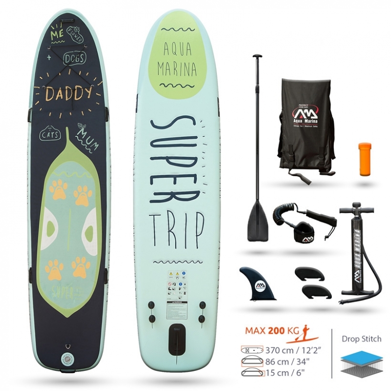 Avec ses 87 cm de large (34"), le Super-Trip d'Aqua Marina offre une stabilité imbattable.Profitez donc en famille de ce paddle aussi rigide qu'agile, fait aussi bien pour les riders débutants qu'intermédiaires poru tout type d'exercice sur rivière ou sur lac !