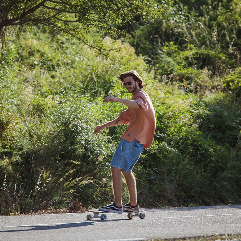 Afin de garantir une qualité de glisse optimale , les roues de l'AZUR 36" ont été designées en 70mm avec un indice de dureté de 75A. Cela permet, à l'aide des trucks, d'absorber facilement les différentes impureté de la route.