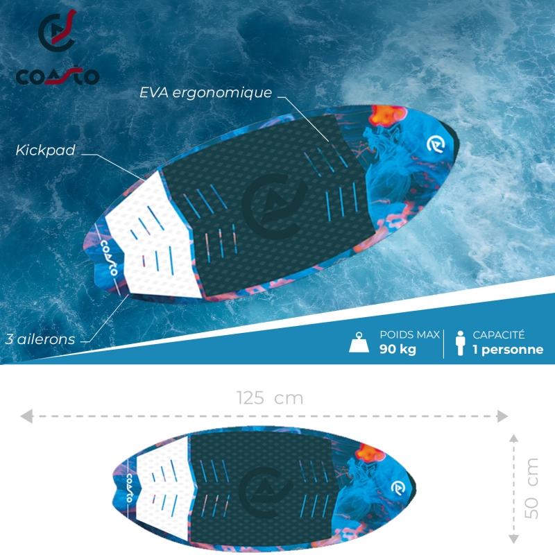 Grâce à ses channels supplémentaires et ses ailerons à l'arrière, le wakesurf de COASTO saura rester stable tout en ayant une bonne traction dans les vagues.