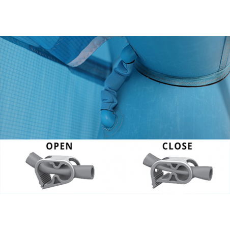 Pour davantage de sécurité, le modèle dispose d'un clip supplémentaire pour isoler l'air en deux parties distinctes pour maintenir de la pression dans la FreeWing si elle est victime d'une fuite.